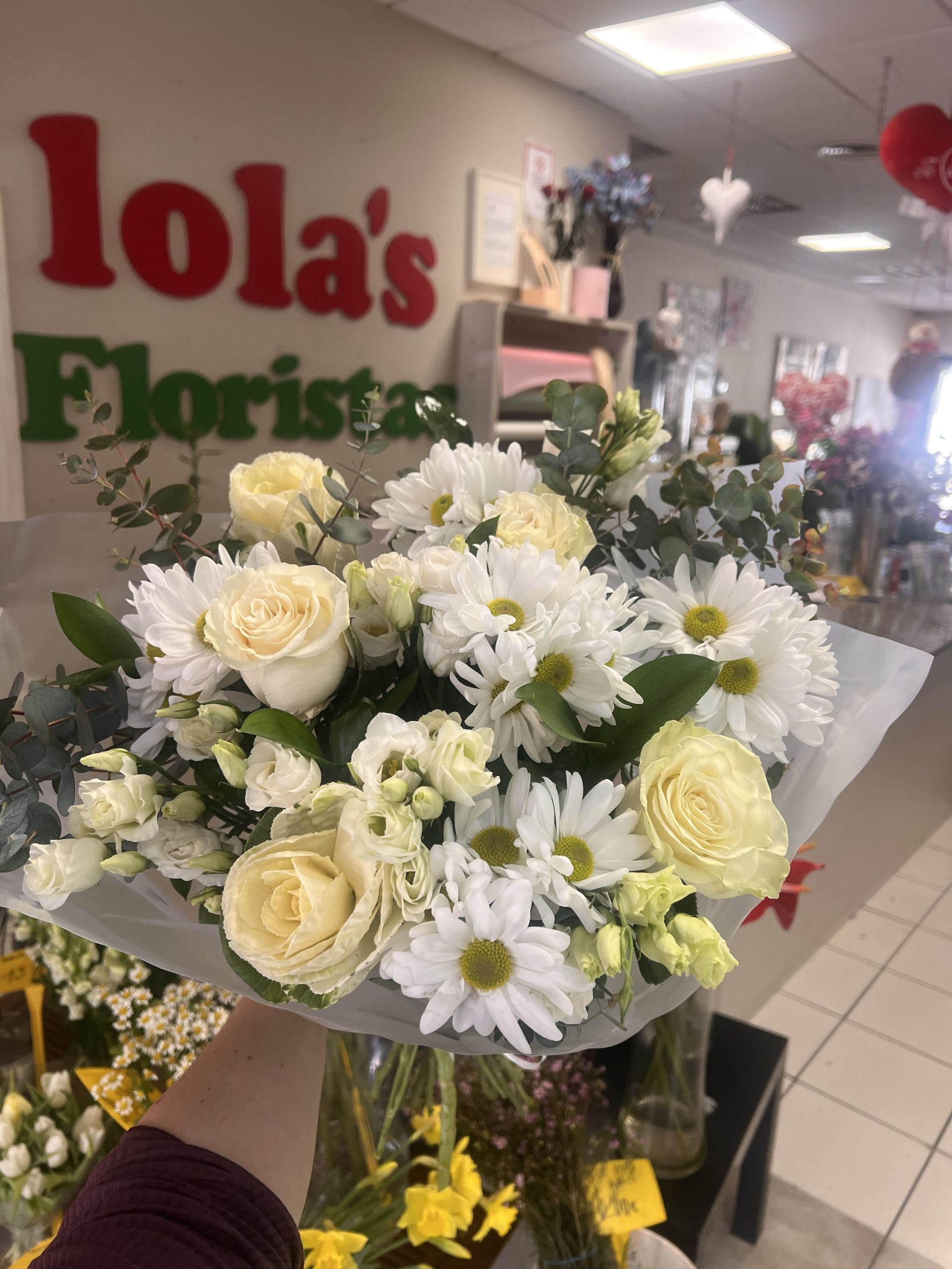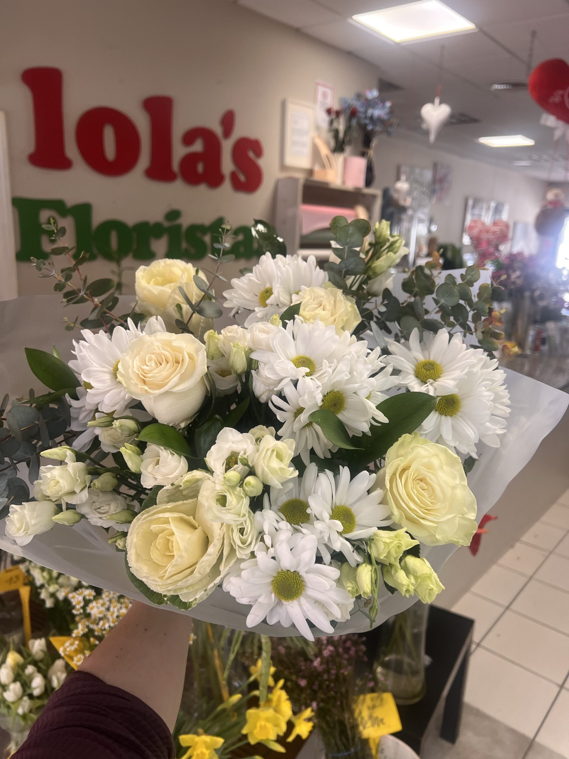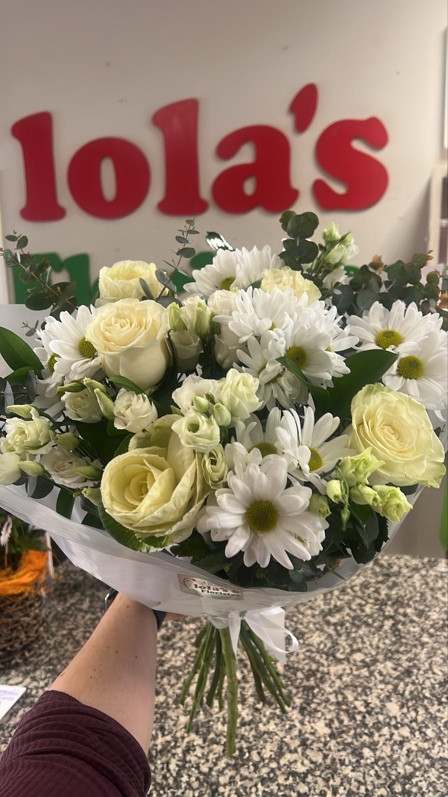 Bouquet compuesto por Rosas, Aster ,Lisianthus y verdes .*sujeto a disponibilidad, puede hacerse alguna sustitución en caso de no estar disponible alguna flor/color lo más similar posible *